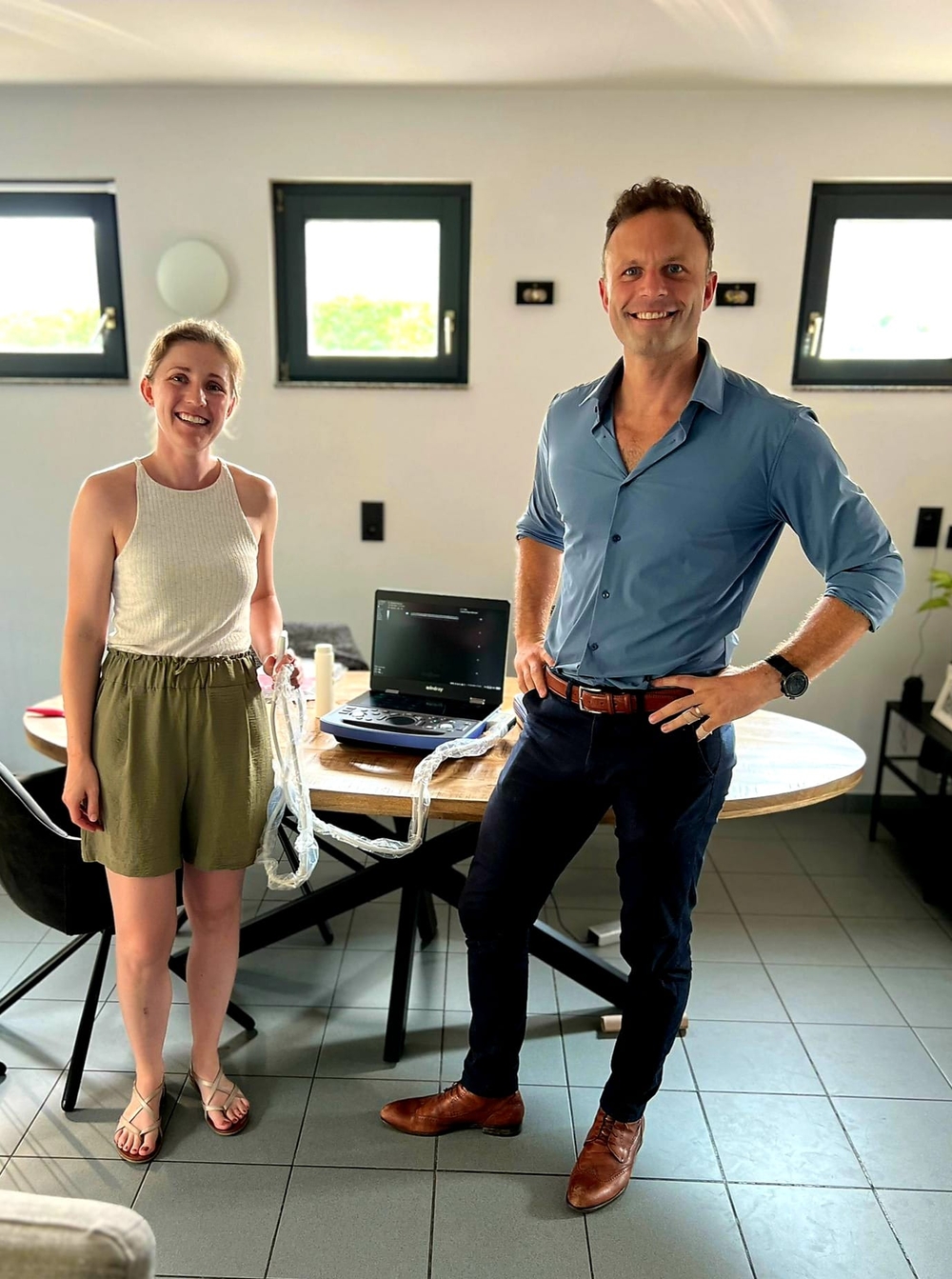 Merci au Dr. Nassèra Raeman d'avoir acheté le Vetus E7 de Mindray Animal Medical. Ce système à ultrasons sera principalement utilisé pour l'échographie abdominale et musculosquelettique avancée et a été fourni avec des sondes microconvexes, linéaires et hockey stick probe. Ce système d'échographie a été choisi en raison de sa qualité d'image, design 'splashproof', de sa facilité d'utilisation et de son excellent rapport qualité/prix. Nous vous remercions de la confiance que vous accordez à ECHOMEDIC ULTRASOUND!