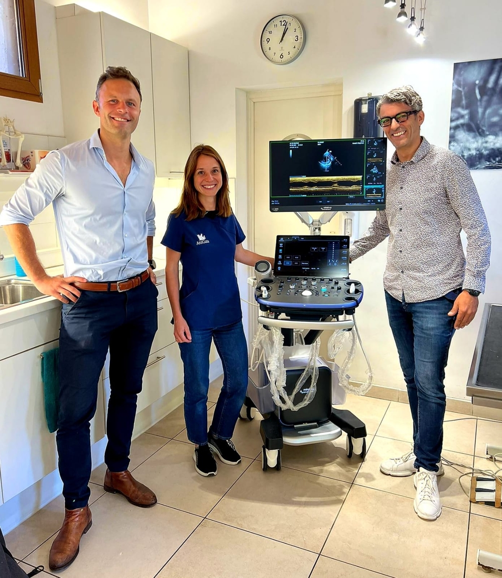 Bedankt aan Anicura Clinique Vétérinaire Du Chateau en dr. Cécile Valembois voor hun aankoop van de Vetus 9, premium echografie systeem. Onze samenwerking met Clinique vétérinaire Du Chateau begon in 2016, toen ze de Mindray DC70 aanschaften. Met de nieuwe Vetus 9 hebben ze een waarlijk premium upgrade gedaan. Dit hoogwaardige echosysteem wordt gebruikt voor geavanceerde abdominale en cardiale echografie. Dank voor uw vertrouwen in Echomedic!