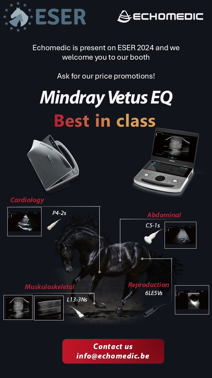 Echomedic en Mindray Animal waren present op ESER 2024 congress om onze oplossingen voor equine reproductie te demonstreren. Heel fijn om bestaande klanten terug te zien en om met nieuwe klanten te spreken!