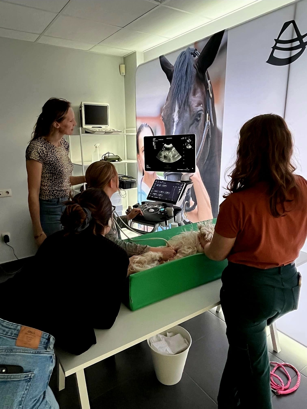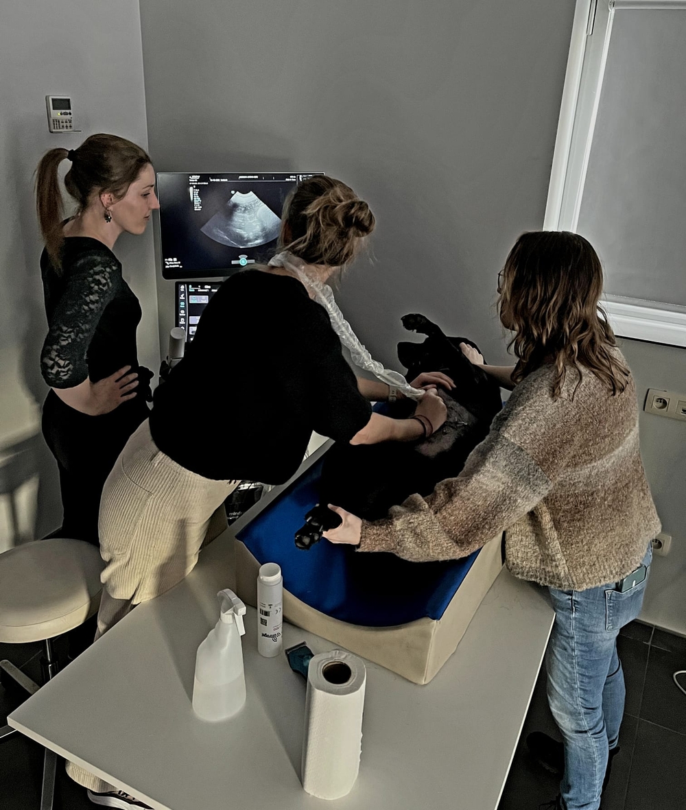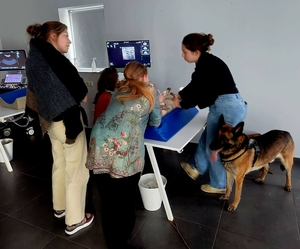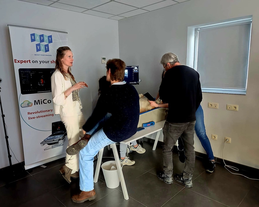 Happy vet en Echomedic mochten de Evidensia Academy BE Echografie van het abdomen deel 1 ondersteunen met de echosystemen van Mindray Animal. De les werd gegeven door Dr. Sarah Clearhoudt en mede ondersteund door onze nieuwe applicatie specialist Nassèra Raeman. In het theoreticum ging het over de principes van echografie, artefacten, frequencies, type sondes etc.. en onder begeleiding van Sarah werden in het practicum de grote organen in beeld gebracht en oefenden de deelnemers hun echo-skills. Mooi om te zien dat Evidensia zo investeert in hun dierenartsen!