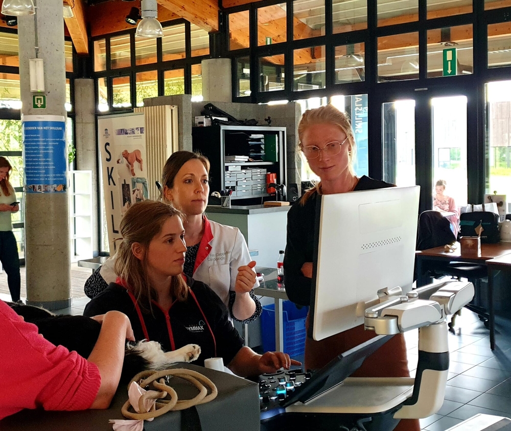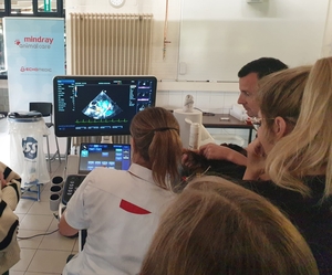 In deze praktijkgerichte 3-daagse lessenreeks krijgen dierenartsen een basisopleiding in echocardiografie, waarbij de theorie wordt gegeven in de voormiddag en het echopracticum in de namiddag. Het practicum ging door in het skillslab van de faculteit met Prof. Pascale Smets, Dr. Veronique Liekens en Dr. Iris Van Cappellen.