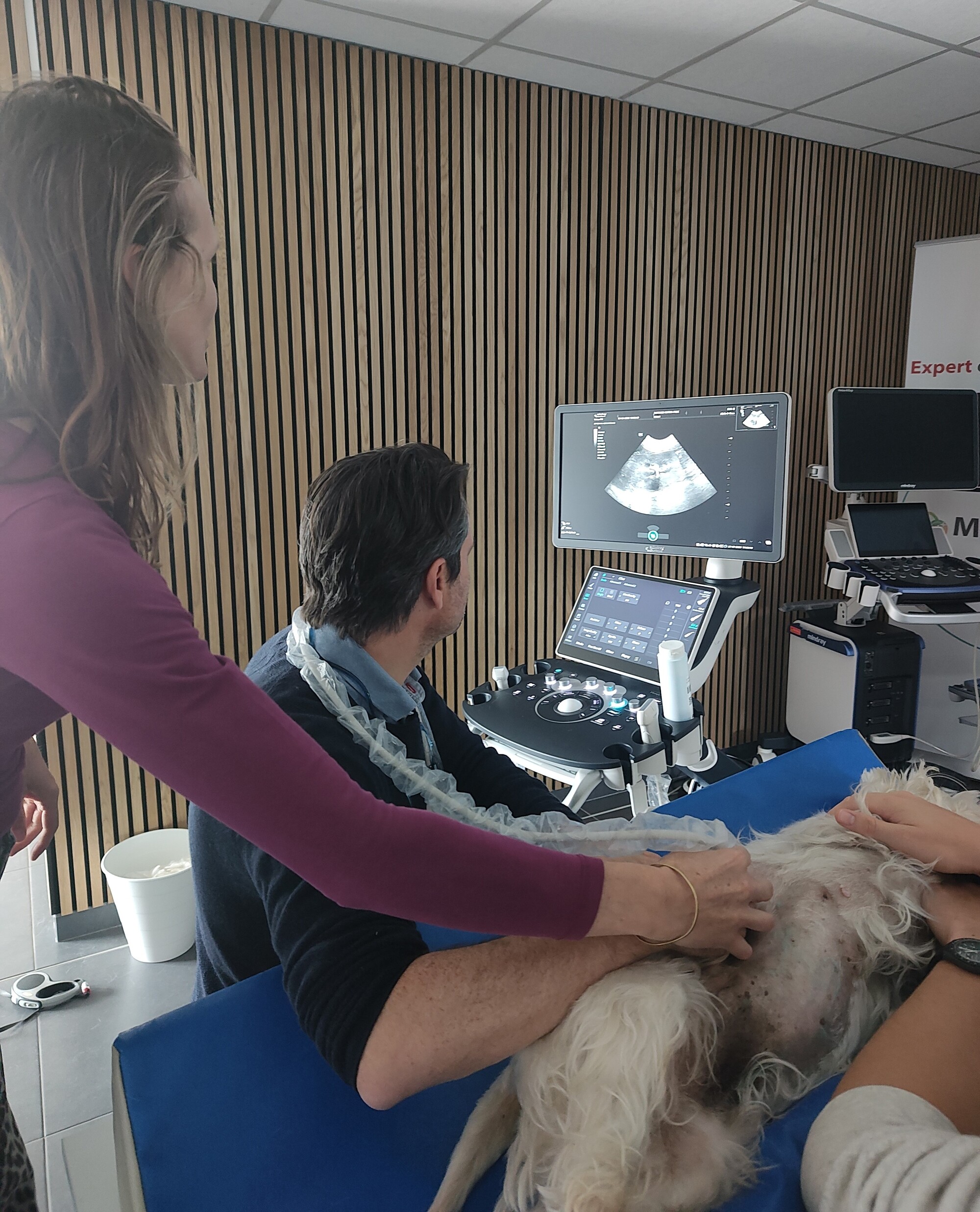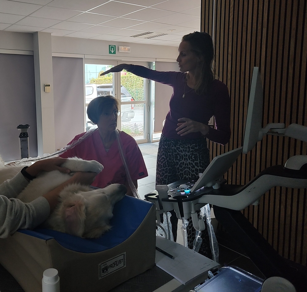 Happy Vet en Echomedic organiseerden een one-on-one echo-opleiding met Dr. Sarah Claerhoudt. Dierenartsen brachten een eigen patiënt mee en kregen een uur lang persoonlijke begeleiding, volledig afgestemd op hun tempo en niveau.