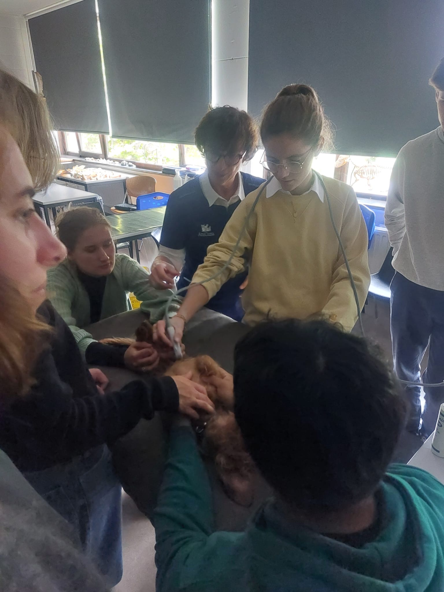 Tijdens deze sessie kregen de studenten een kennismaking met de basisprincipes van echografie, praktische toepassingen in de diergeneeskunde en konden zelf ervaren hoe moderne echoapparatuur het verschil maakt in de dagelijkse praktijk.
