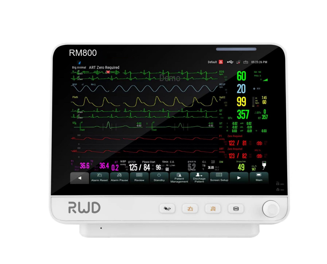 De RM700 is een compacte, lichtgewicht multi-parameter monitor, speciaal ontworpen voor continue bewaking van vitale functies bij dieren tijdens anesthesie, intensieve zorg en routinecontroles. Dankzij diergerichte algoritmes en hoge meetnauwkeurigheid levert het systeem essentiële fysiologische gegevens in real time.