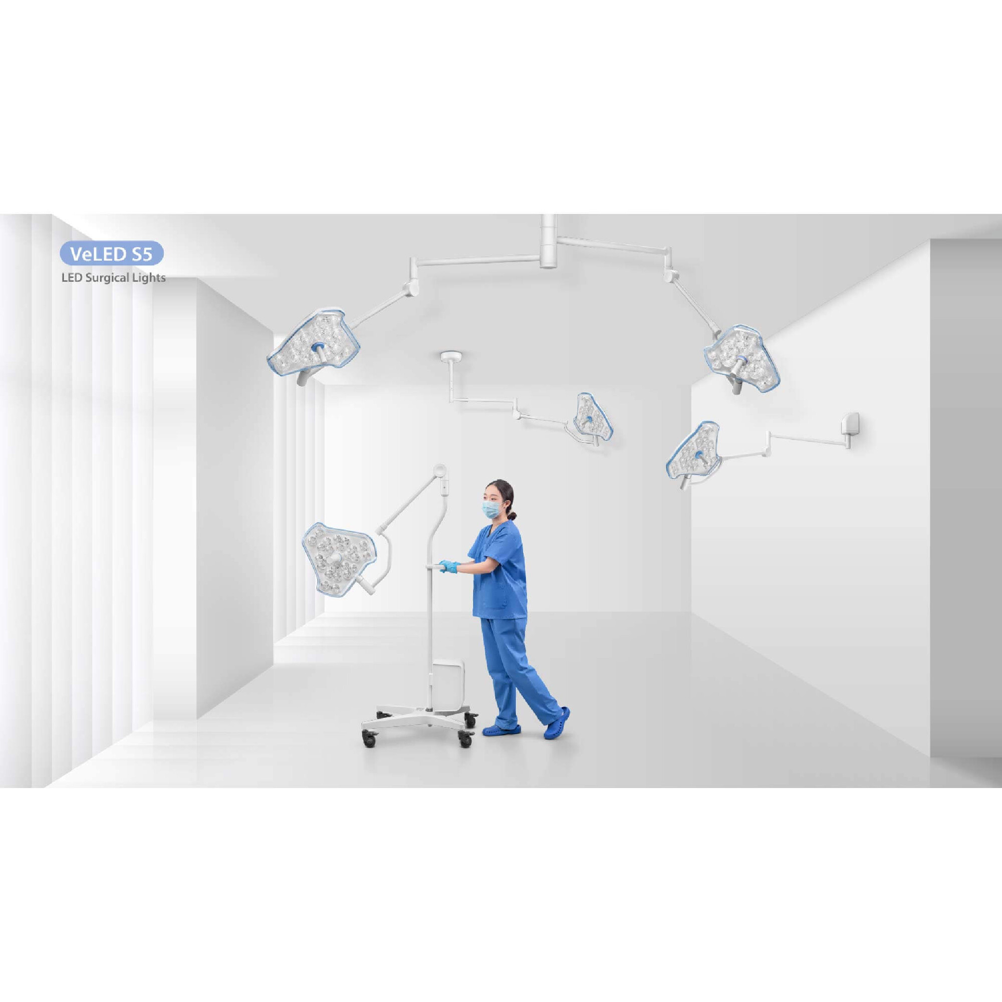 Dankzij het modulaire ontwerp is de VeLED S5 inzetbaar als plafondlamp, wandlamp of mobiele lamp, zowel met als zonder batterij. Hierdoor past de lamp zich moeiteloos aan elke klinische situatie aan — van vaste OK’s tot flexibele of tijdelijke behandelruimtes.